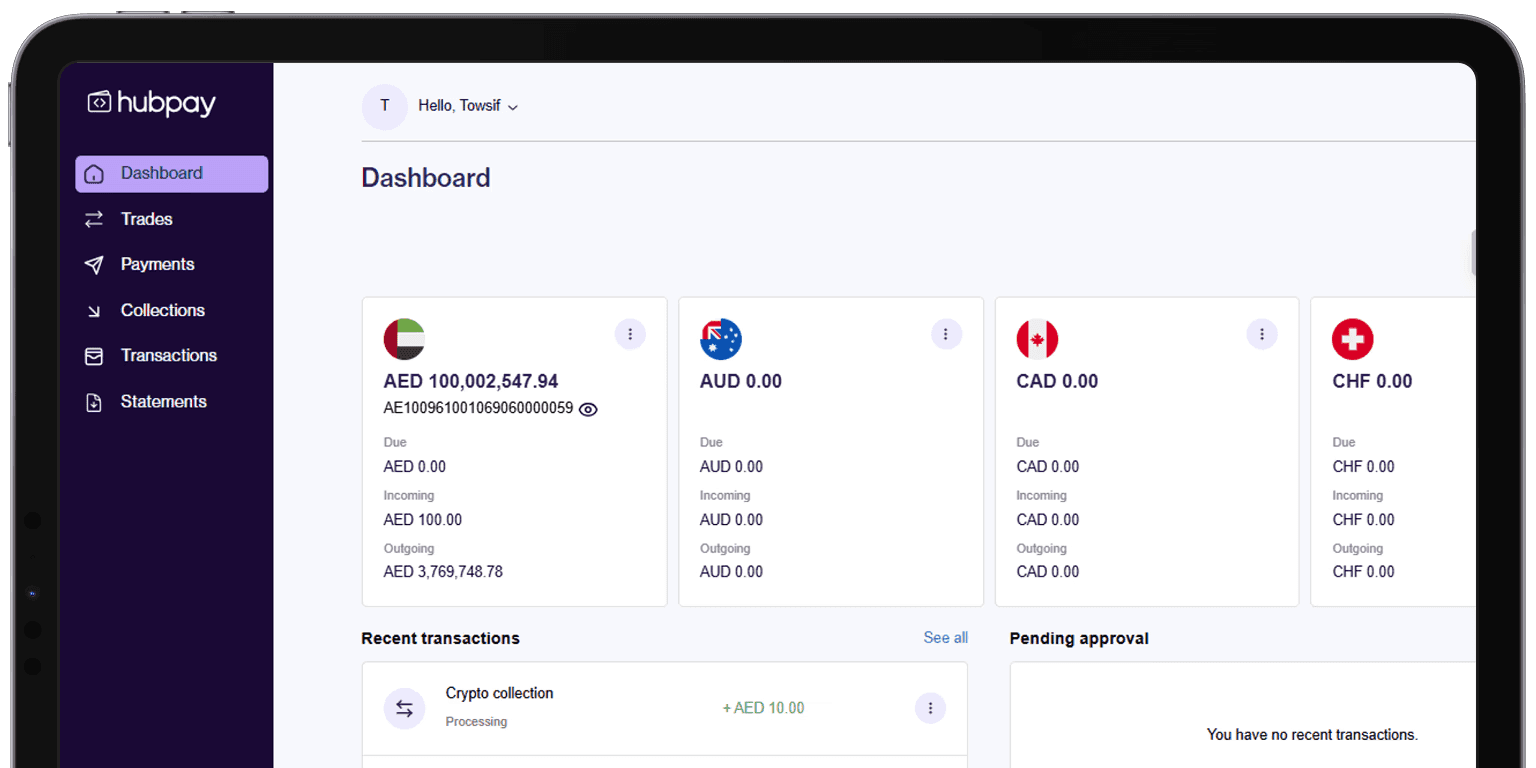 All customer funds are held in separate, ring-fenced accounts with world class financial institutions. Hubpay adheres to the Abu Dhabi Global Market's strict regulations and implements robust security measures, including two-factor authentication and stringent approval policies.